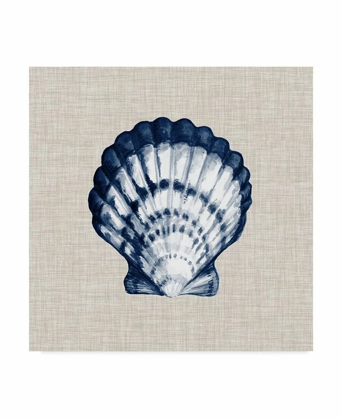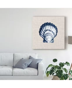 This ready to hang, gallery-wrapped art piece features a blue and white shell in the center of the frame. Gallery-wrap is a method of wrapping an artist’s canvas around a hidden, wooden frame allowing for a frameless presentation.