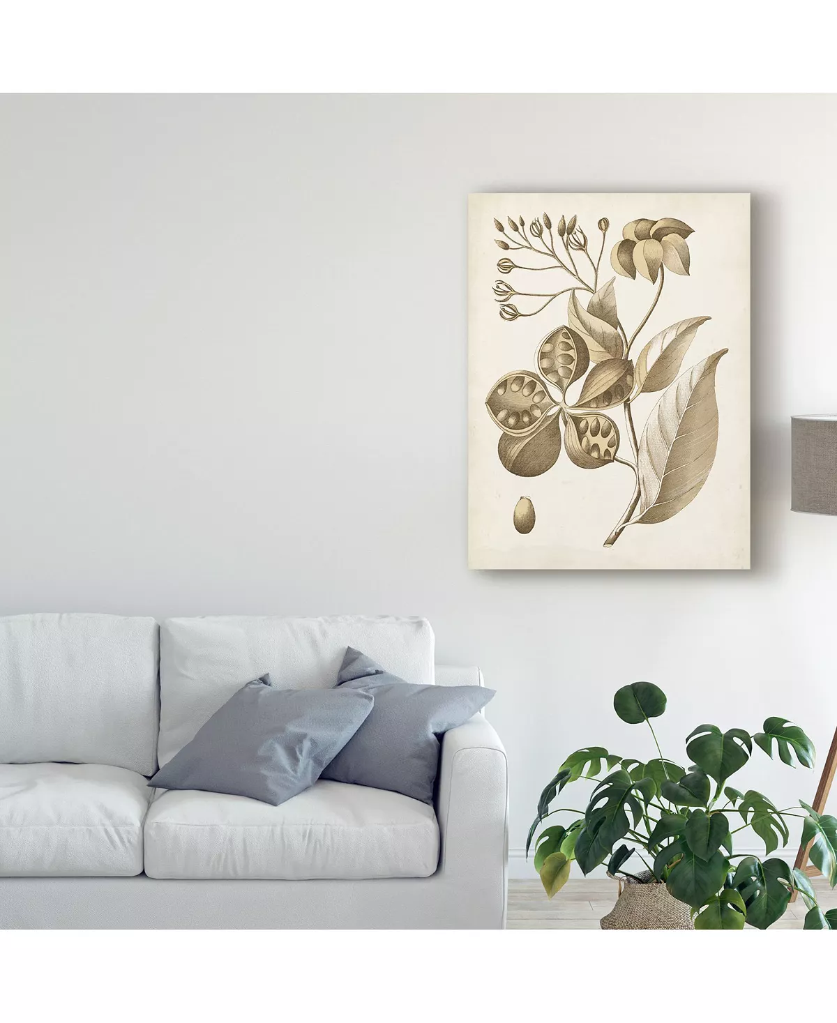 This ready to hang, gallery-wrapped art piece features traditional illustrations of flowers over a beige background. Gallery-wrap is a method of wrapping an artist’s canvas around a hidden, wooden frame allowing for a frameless presentation.