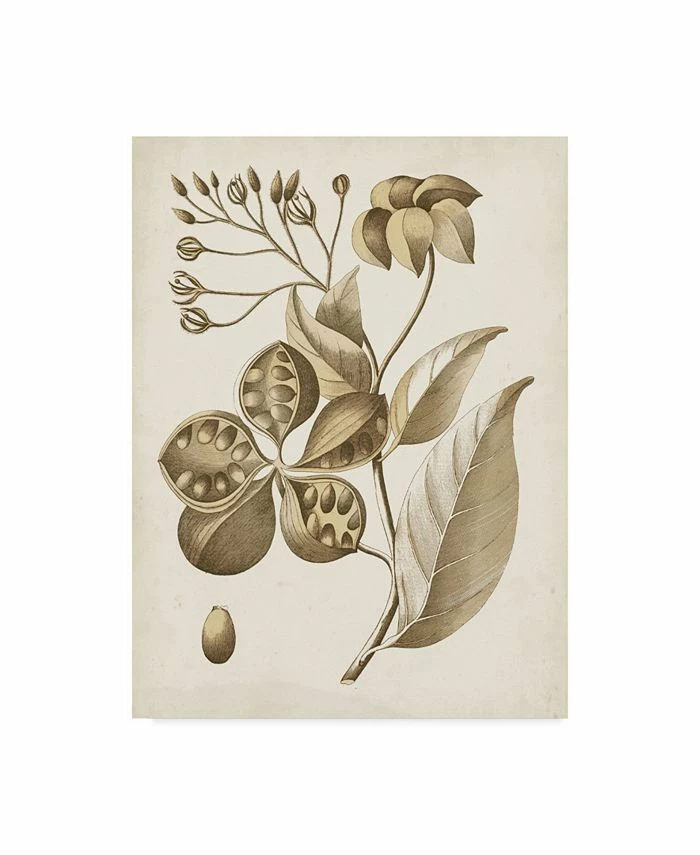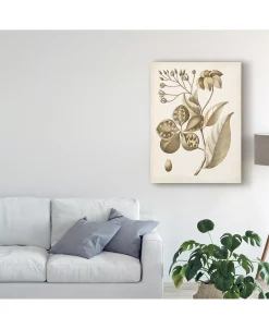 This ready to hang, gallery-wrapped art piece features traditional illustrations of flowers over a beige background. Gallery-wrap is a method of wrapping an artist’s canvas around a hidden, wooden frame allowing for a frameless presentation.