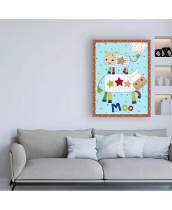 This ready to hang, gallery-wrapped art piece features happy animals in a children’s composition. Gallery-wrap is a method of wrapping an artist’s canvas around a hidden, wooden frame allowing for a frameless presentation.