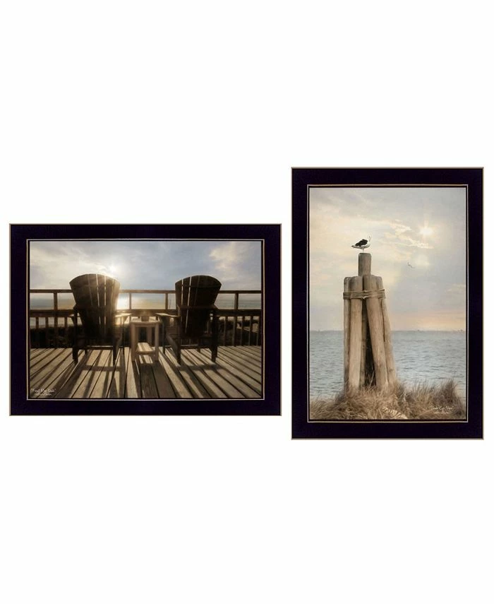 Primitive framed artwork by Lori Deiter. The relaxing scenes of beach chairs the ocean makes of wish we were there. Each framed print arrives ready to hang.