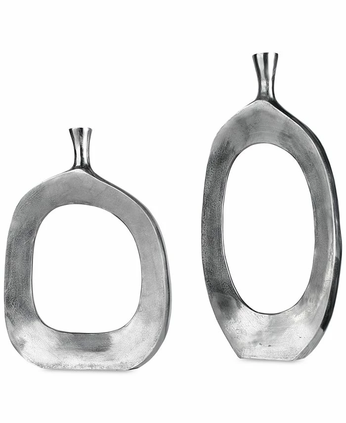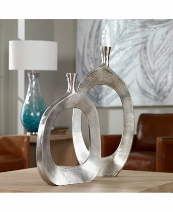 A textured nickel finish creates the modern appeal of this pair of over-sized decorative vases from Uttermost, adding striking curves to any room.