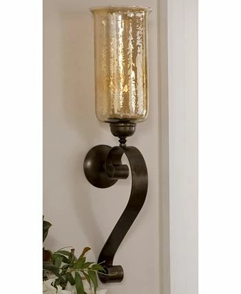 Florentine-inspired design and cosmopolitan style blend in spectacular fashion with the elegant curves and amber finish glass housing of this magnificent Joselyn Candle Wall Sconce from Uttermost.