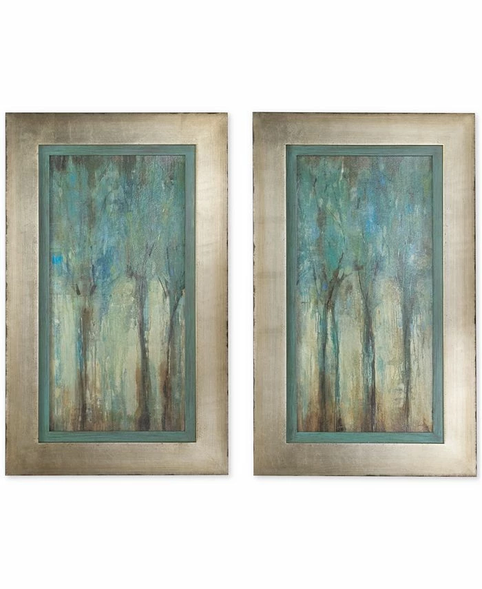 Soften the atmosphere of your space in a contemporary earthy way with the brisk-hue abstract tree motifs and soothing-tone frames of this two-piece Whispering Wind Wall Art set from Uttermost.