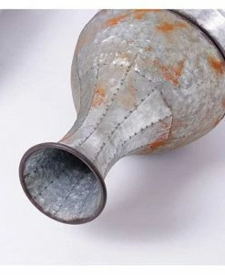 Tall cylinder shape and rust design on metal exterior are what makes this country-style vase stand out between your sofas and tables. This galvanized metal vase will bring farmhouse charm whether used as home decoration just the way it is.