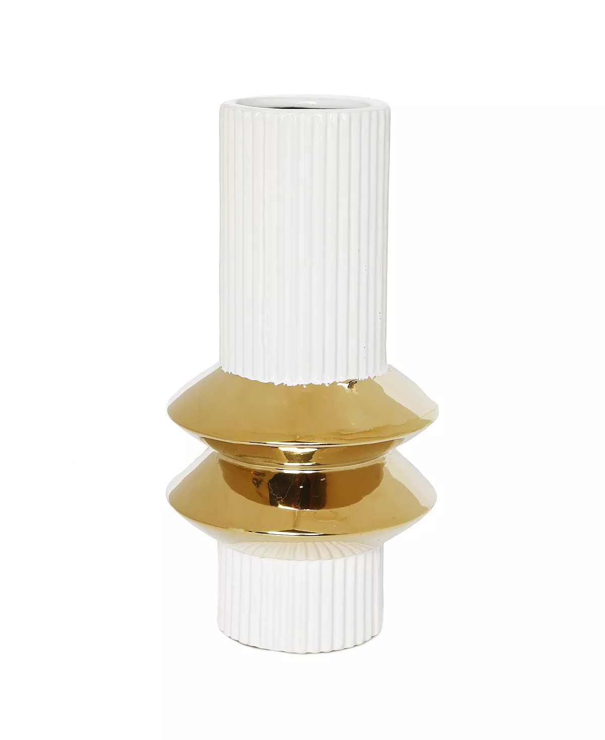 Enjoy this white porcelain vase as a decorative centerpiece for any occasion. Its practically designed with a gold-tone center rim for utmost beautify. Present as a gift to your friends and loved ones on their special day to show them how much you love them.