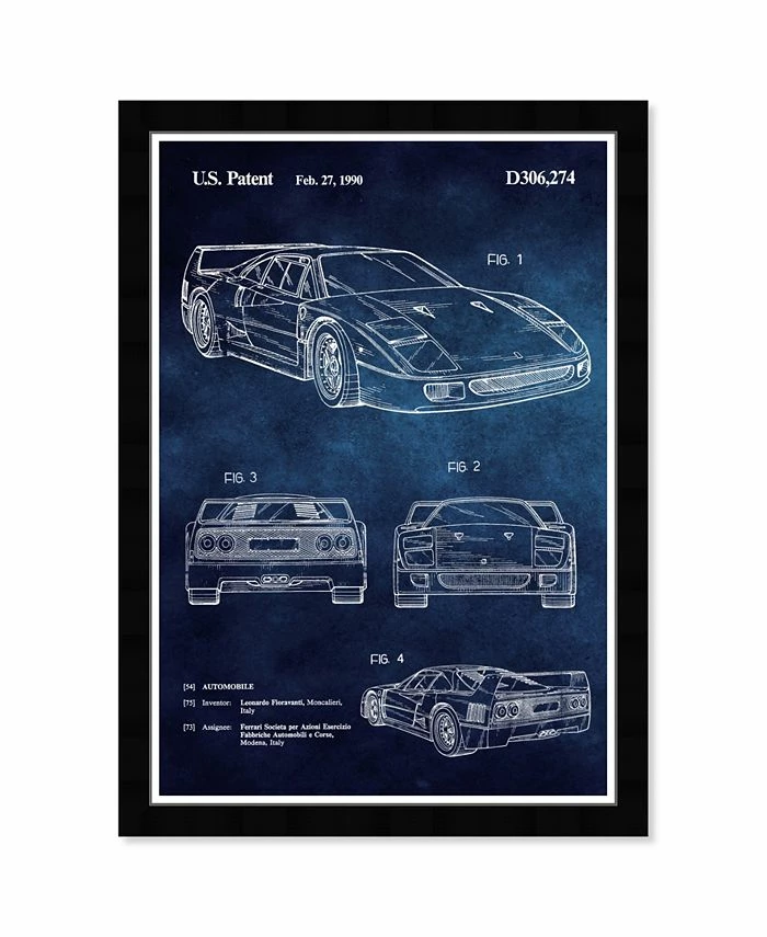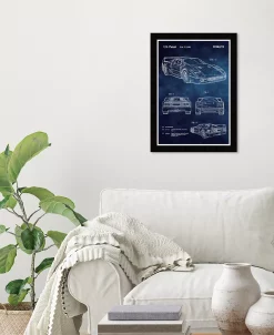 Sport Car Patent by Wynwood Studio will inspire and transform your space with its eye-catching design in blue and white. Printed using premium, fade-resistant inks reveals rich colors and fine details. Framed and fully assembled as shown. Ready to hang with hardware included.